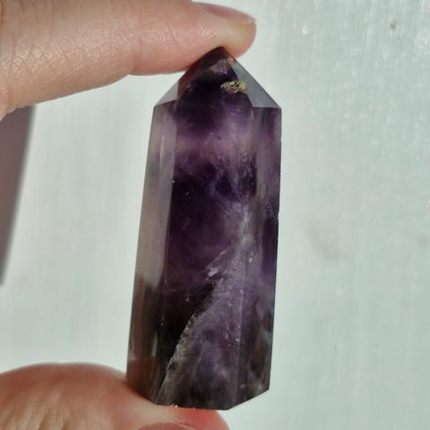 Flot transparent ametyst tårn med nogle virkeligt flotte detaljer og regnbue effekt i midten.