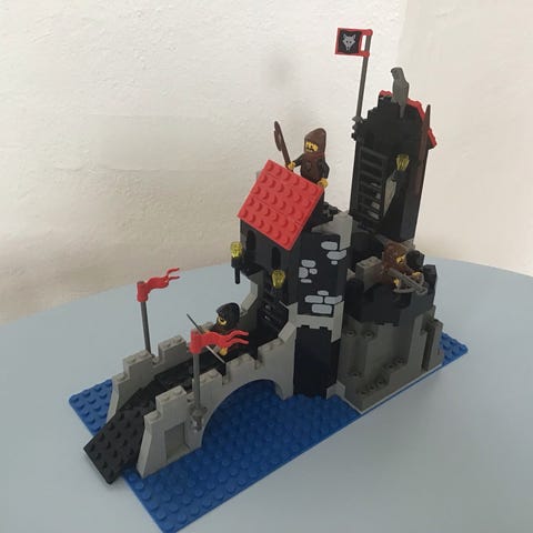 6077 lego sæt I flot stand på nær pladen.
