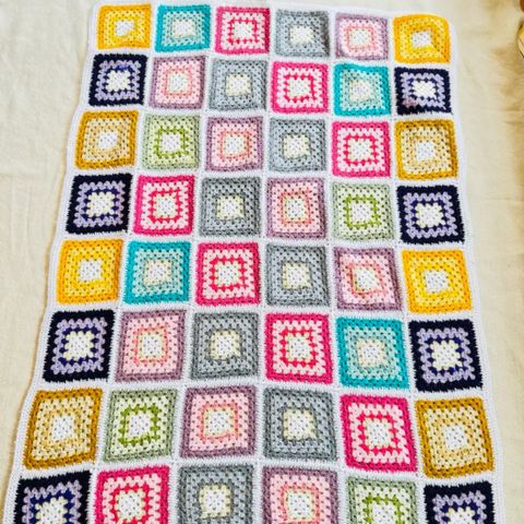 Vintage hæklet tæppe i 100% bomuld. Tæppet er i meget fin stand!