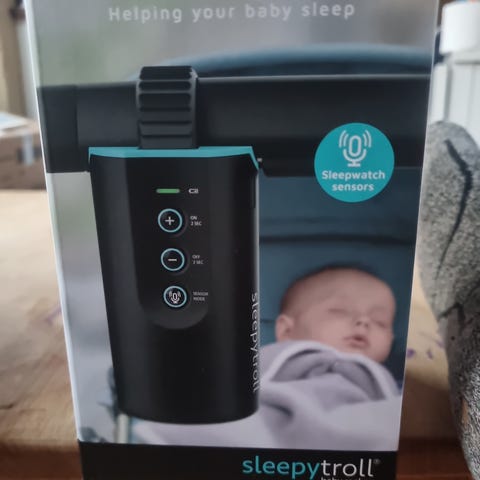Sleepytroll bærbar. Skaber rokkende bevægelser til fx barnevogn eller seng for at få en baby til at sove. Opladelig og i fin stand