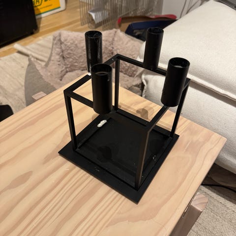 Audo Copenhagen lysestage i sort metal med plads til fire lys. Lysestagen har et firkantet design med en bakke i bunden til opsamling af eventuelt dryppende stearin.