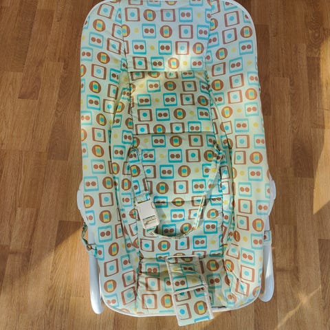Vippestol, brugt få gange siden vi købte den i en genbrugsbutik for 95 kroner for et halvt år siden. Nu er vores datter blevet for stor til den (kan tage op til 11 kg.)