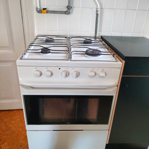Gorenje gaskomfur med el-ovn til fri afhentning. Kræver en våd klud, men er ellers i fin stand.