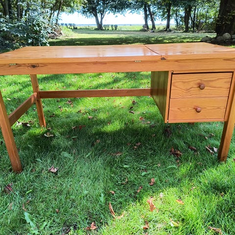 Skrivebord malet lyserød.