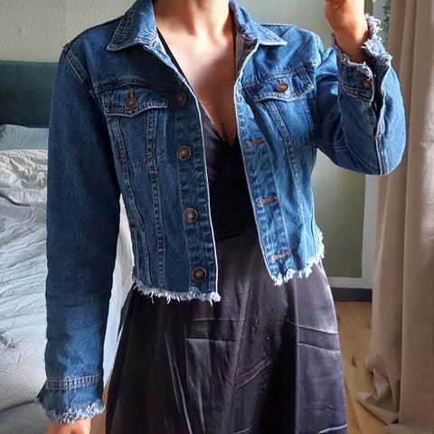 Så fed denim jakke i "mellem- længde".