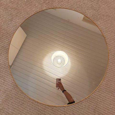 Sinnerup rundt spejl med integreret hylde i sort finish. Spejlet har en enkel og funktionel design, der kan bruges som dekoration og opbevaring. Der er små knager bag ved spejlet så man kan hænge nøgler