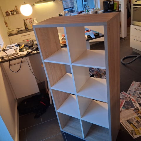 Rummelig, praktisk, dekorativ bogreol. Bogreol med 6 rum til alle dine bøger og fine sager.