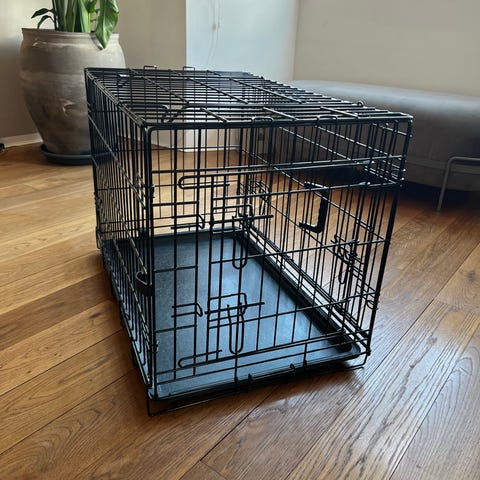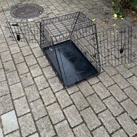 Hundebur i sort metal med bakke