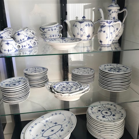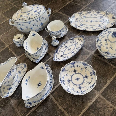 Royal Copenhagen Musselmalet Riflet stel service i porcelæn BLÅ BLOMST