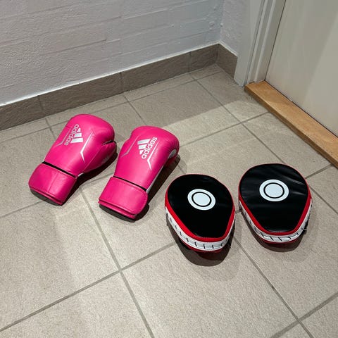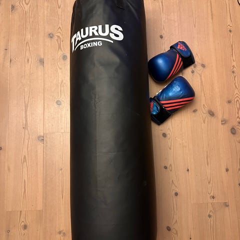 ASG Boxing bokseudstyr bestående af en sort boksepude og matchende boksehandsker. Skal afhentes i Albertslund.