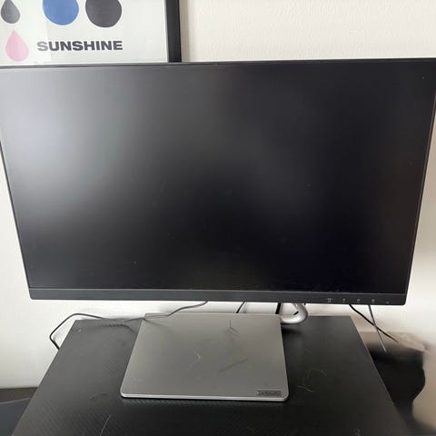 LG 24" skærm med sort kabinet. Skærmen har en størrelse på 24 tommer og er egnet til brug ved computere til både arbejde og fritid.