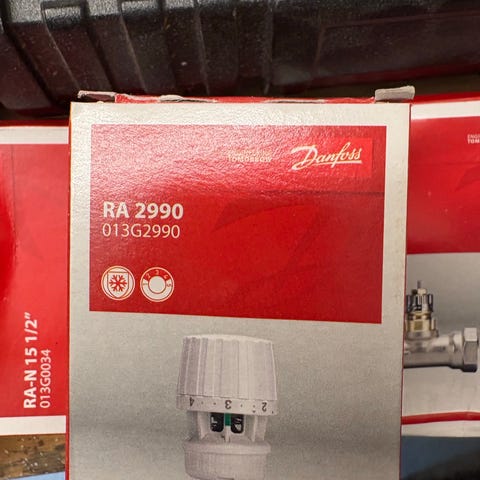 4 stk Danfoss RA/V Service termostatventil med en størrelse på 34 mm. Produktet anvendes til regulering af varme i varmesystemer.