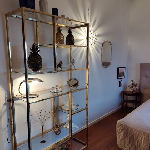 Super flot snedkerbygget butiksinventar, med 6 forskellige udstillingsmontre og 6 skuffer.