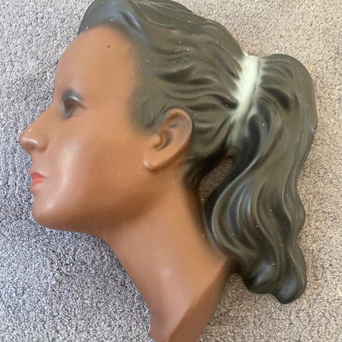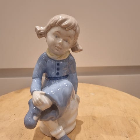 Keramisk vægrelief, der forestiller en pige iført blå kjole og hat. Vægreliefen er udført i keramisk materiale med detaljer i blå og hvide nuancer samt brune elementer. Mål: bredde 30 cm., højde 37 cm., vægt kg. 2,650. Ukendt kunstner. Har en ide om at det er 50-70 år gammelt.