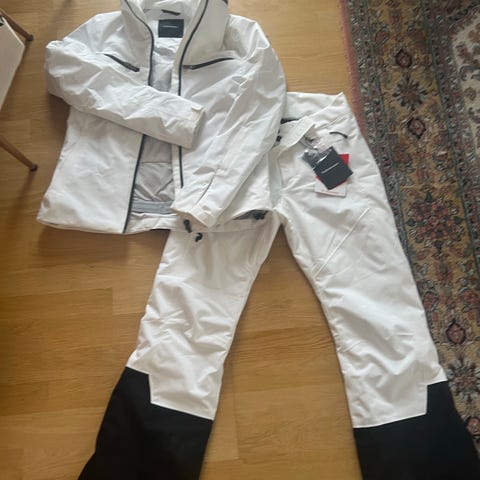 Herre. Peak Performance. Hipe jakke L (ca 3 år ) og bukser M (1 mdr) sæt i rød og sort farve. Jakken har hætte og lynlås foran m lommer og liftkortlomme. Bukserne er sorte med logo.