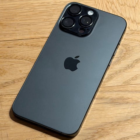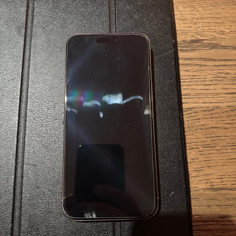 Apple iPhone 15 Pro Max smartphone med 256 GB lagerplads. Enheden har en mørkeblå farve og leveres opladerkabel. Telefonen har en kraftfuld processor og avancerede kamerafunktioner.