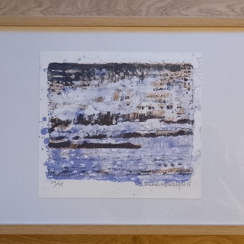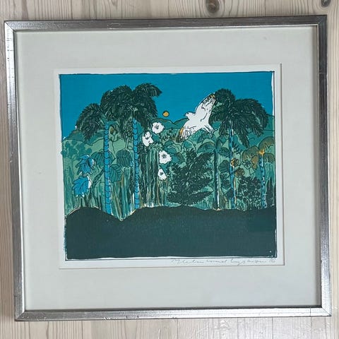 Mysteriespil. Litografi. Ca 45 x31 cm. Med dedikation til hans gallerist.