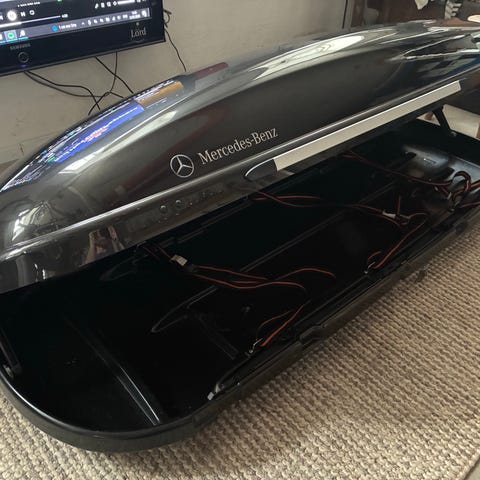 Original Mercedes Benz tagboks 450 liter. Stor og fin. Har lidt skrammer, der ikke ses på afstand.