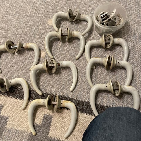 Røde plast dørhåndtag søges