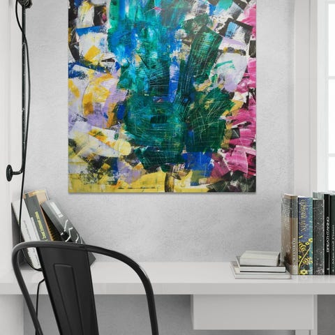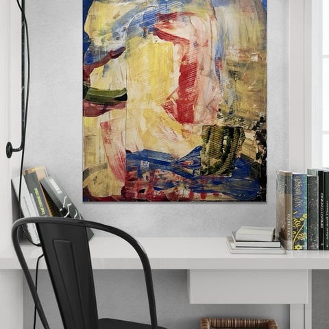 Maleri af Marianne Markvad fra 2003 med abstrakt motiv i ramme. Indeholder forskellige farver og former, herunder hvide, beige, blå og lilla nuancer.