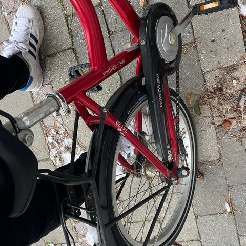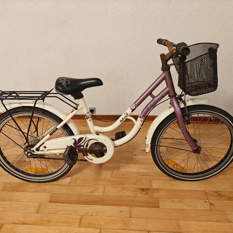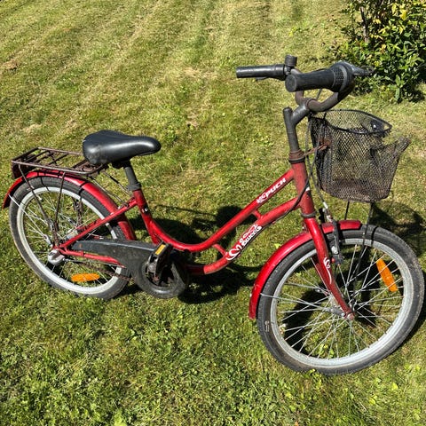 Brugt 20" pigecykel (passer fra ca. 6 år) med tre gear, der virker fint.
