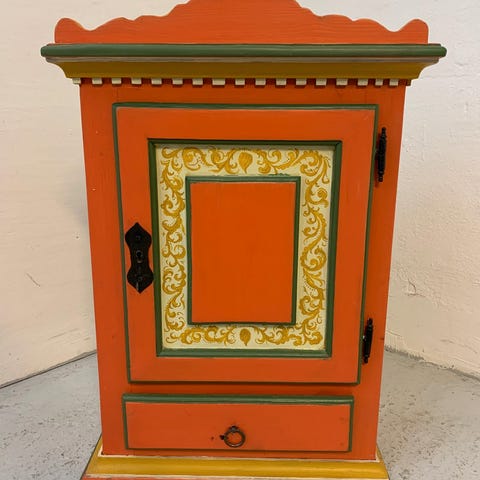 Ældre tobaksskab i en lækker mintgrøn farve sælges.