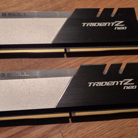 G.Skill Trident Z Neo RAM DDR4 med en kapacitet på 32 GB (2x16gb) og en hastighed på 3600 MHz.