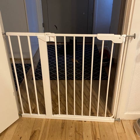 Sælger BabyDans mest populære sikkerhedsgitter Premier. Der medfølger forlængerdele, så den kan nemt indstilles til forskellig bredde åbninger. Det er et presmonteret gitter, så man ikke skal bore eller skrue for at montere det. Gitteret passer til døråbninger, der er mellem 112-119,3 cm.
