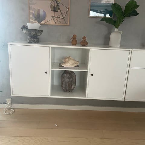 Flot Mistral hænge reol. Foroven 3 stk h60, b89 og d 32. cm. Åbne reoler i alt 12 rum.