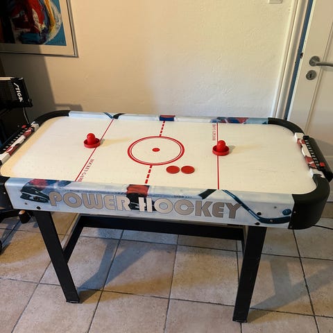 Brookstone Light Up Tabletop Air Hockey er et bordspil med lysfunktion, designet til indendørs brug. Spillet inkluderer en bordplade med målområder, to skøjter og to pucks. Materialet kombinerer plastik og trælignende elementer, og spillet er velegnet til underholdning for alle aldre.