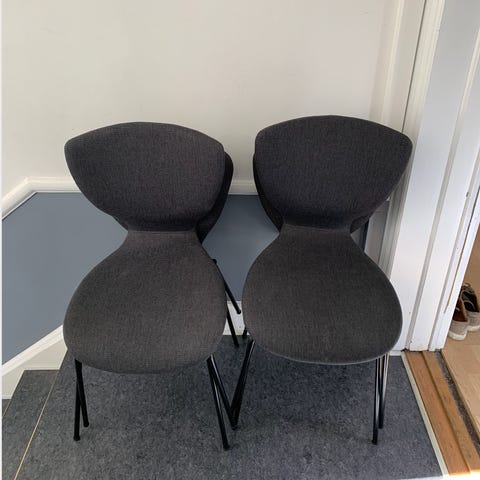 4 grå stole af ukendt mærke: mål ses på billede - skal afhentes selv, byd gerne!