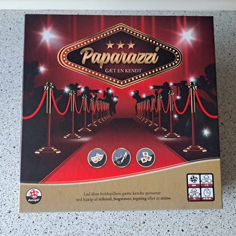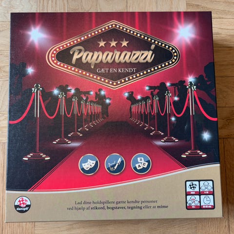 Paparazzi er et underholdende hold- og selskabsspil, der gælder om at gætte kendte personer fra bl.a. film og tv, sportens verden eller historiske personer. Man giver ledetråde, mimer, tegner, sammensætter ord og mere for at ens hold skal gætte rigtigt. Sjovt og med et niveau hvor alle kan være med 🤗