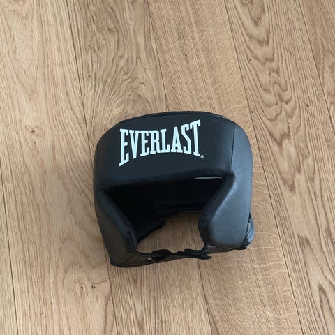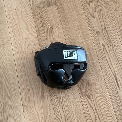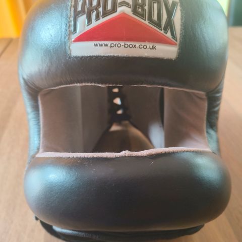 Den har polstring omkring hele hovedet og justerbare stropper for sikker pasform.