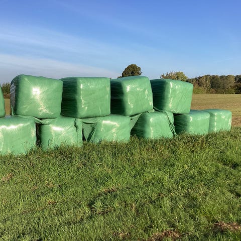 Pallebur med ensilagenet / silonet. Stand, antal og str. ukendt. Jeg tænker der er nogle stykker i buret. Pallebur følger ikke med