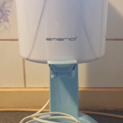 Emerio Waves KM-101344 køkkenmaskine/røremaskine i rød med skål i rustfri stål. Arbejder solidt og ælter let tunge deje. Solide sugekopper sikrer stabilitet. Let at betjene og rengøre. Maskinen har flere tilbehør bl.a. dejkrog og piskeris. LxBxH 37x20x35 cm. Effekt 650 watt. Strømforsyning er 220-240V, 50/60Hz.