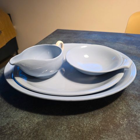 Grindley England ovalt porcelænsfad med orange kant. Fadet har en bølget kant og er fremstillet i porcelæn. Der er synlige brugsspor og mindre skader på kanten, som ses på billederne.