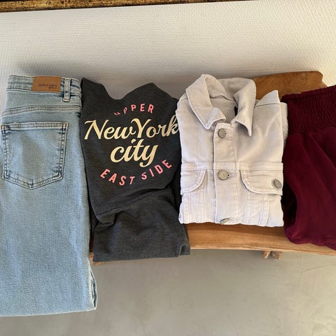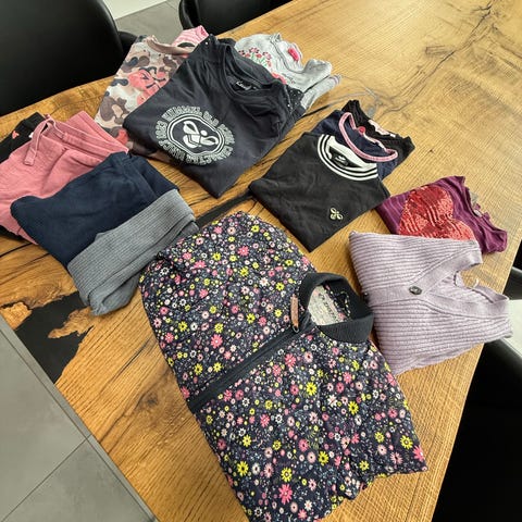 Gina Tricot pige tøj i størrelse 174 med multifarvet design. Sættet indeholder forskellige beklædningsgenstande til børn, egnet til daglig brug.
