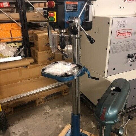 Scheppach DP55 søjleboremaskine med digital display, effekt på 710 W, omdrejningstal fra 500 til 2600, maksimal borekapacitet i træ/metaller på 40/13 mm, og borepatron på 13 mm. Ny pris 1199kr nu 650kr kun lidt brugt virker 100%