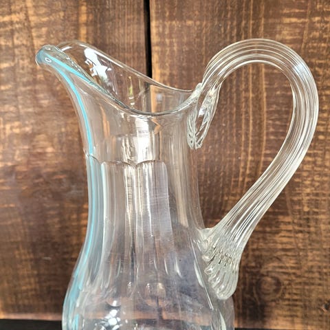 Fin ældre glaskande fra Holmegaard. Med musling på hank.