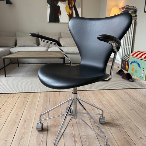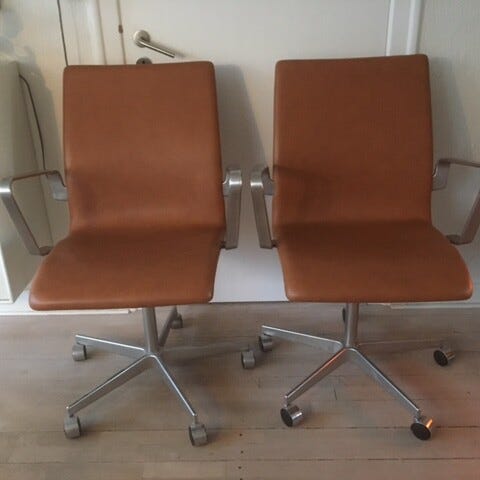 Fritz Hansen Arne Jacobsen kontorstole i cognacfarvet læder