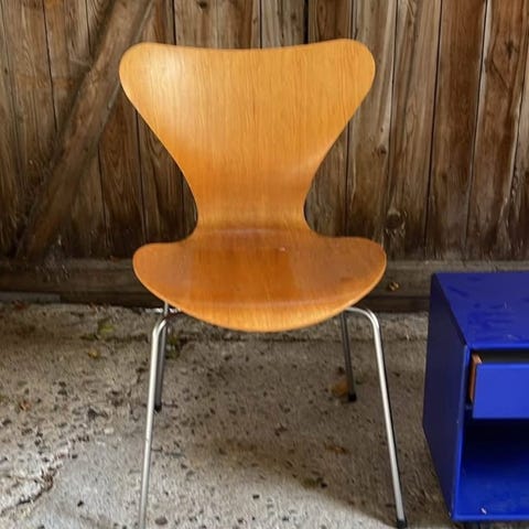 Fritz Hansen Arne Jacobsen stol med gråt stofbetræk den er lidt blød i ryggen