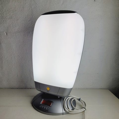 Lys Terapi Lampe med rød LED-belysning. Designet til at levere lysbehandling i hjemmet eller på kontoret. Kompakt og bærbar enhed, der kan hænges op eller placeres på en flad overflade. Anvendes til lysterapi med fokus på rød lys spektrum.
