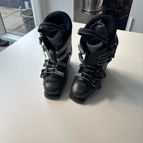 Salomon Team junior skistøvler i sort farve med tre spænder til justering. De er str. 25-25,5 hvilket svarer til str. 39. Skistøvlerne har en robust konstruktion og er designet til at give støtte og komfort ved skiløb. Sidder godt på foden.