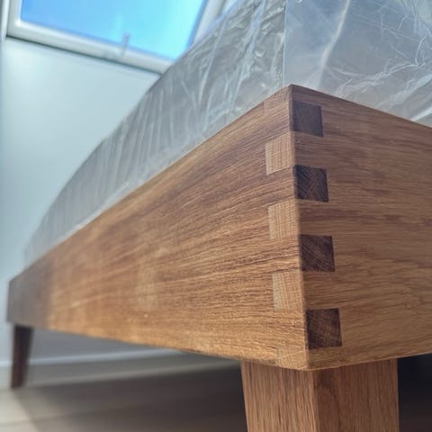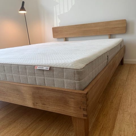 Sengeramme, Kaagaard, olieret eg, NY, b: 140 l: 200, Helt ny sengeramme. (model 380). Står til kr. 3721 lige nu (udsalg). Kvittering haves. Træben er massiv egetræ. Superflot. Er behandlet m olie fra fabrikken, og det kan en i familien desværre ikke tåle pga astma. Pga. ekstrem dyr retur fragt (!!), forsøger jeg derfor salg her. Vil bare have det væk nu - derfor den superlave pris! Rammen er samlet, men ben er ikke sat på. Ikke ryger. Super solid helt ny Kaagaard lamelbund sælges med. Bud velkomne for begge dele samlet. Hurtigt salg ønskes.