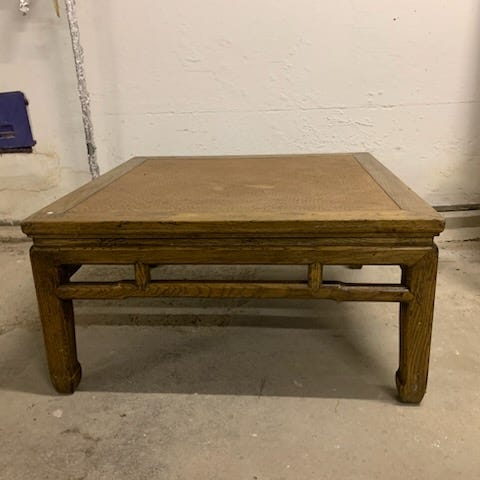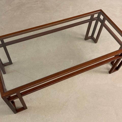 Kinesiske vintage sofabord m/glasplade. Glasplade måler 84,5 cm x 38,5 cm, 0,5 cm tyk.