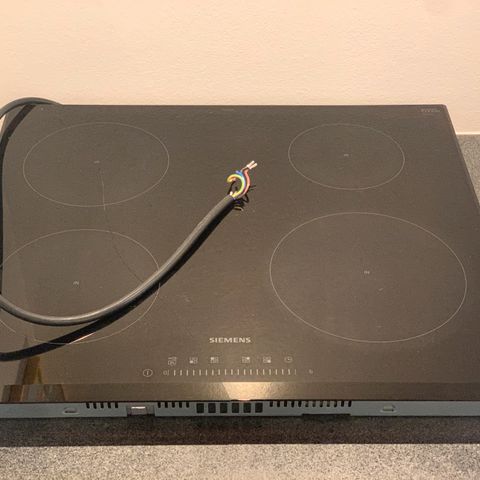 Siemens induktionskogeplade med fire kogezoner. Kogepladen er sort og har en glaskeramisk overflade. Designet til effektiv og præcis madlavning med induktionsteknologi.