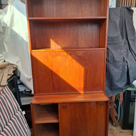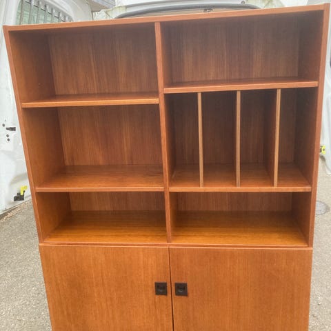 Teaktræ reol- skab brugt , reolen skal adskilles 2 del