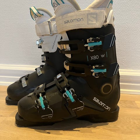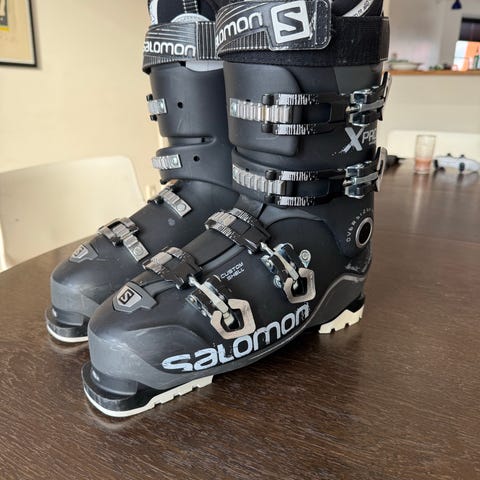 Salomon X Pro 120 skistøvler i sort farve. Skistøvlerne har fire spænder og er designet til at give god støtte og kontrol ved skiløb.