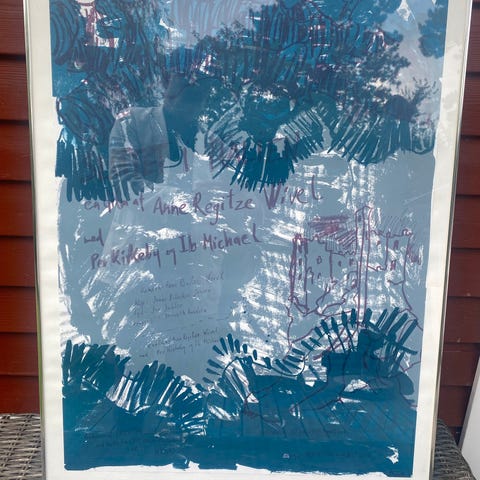 Andy Warhol plakat kunsttryk med motiv af en siddende person. Plakaten har farver i grøn, brun og hvid. Velegnet til vægophæng som dekoration.