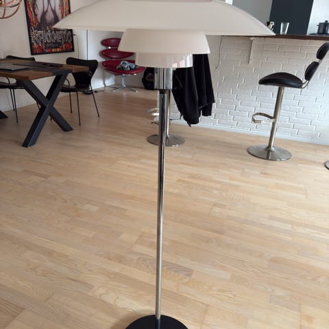 Louis Poulsen PH 80 bordlampe designet af Poul Henningsen. Lampen har en sort farve og en rund base. Den er velegnet til brug som bordlampe i forskellige rum. jeg har lige monteret en ny storskærm på kommer også til Horsens